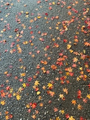 いつも通る道に、紅葉の絨毯が出来てました