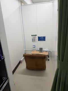 完全に仕切られた個室で、白を基調とした清潔感ある待機スペースです。