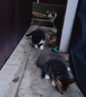 家の前にいた三毛猫も近寄ってきたので、おそらく三毛猫の子供達かと♪