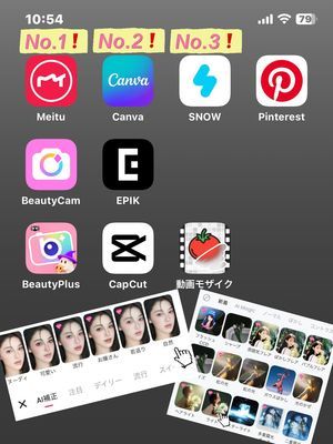 文字入れも簡単だし、イマドキなAI加工が多くてとにかく可愛い!
