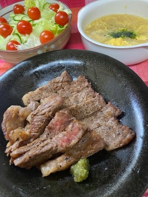 写真は、真夜中に焼き焼きした🔥「サーロインステーキ🥩」ざます🤭