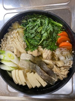 大好きな春菊🥬の下には白菜が沈んでおります。。