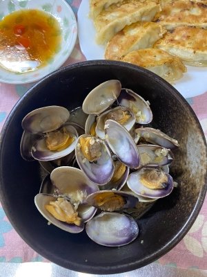 朝から「あさりの酒蒸し」。。。