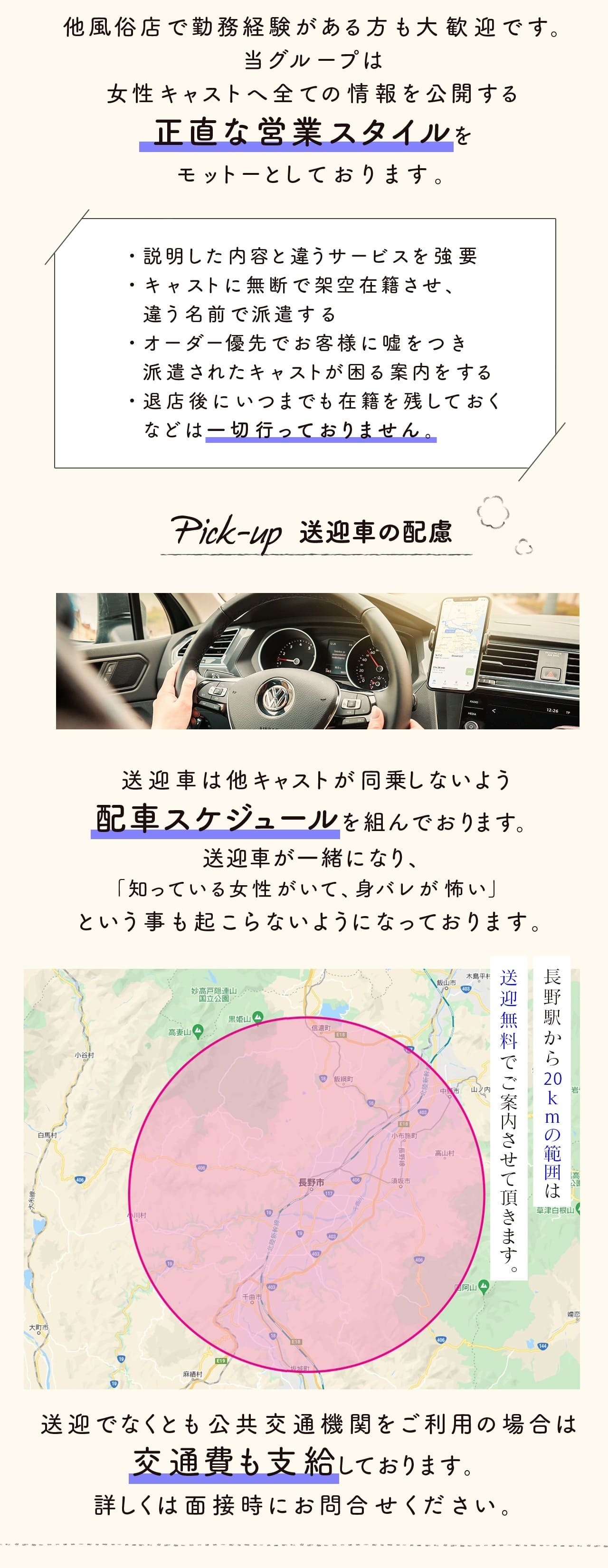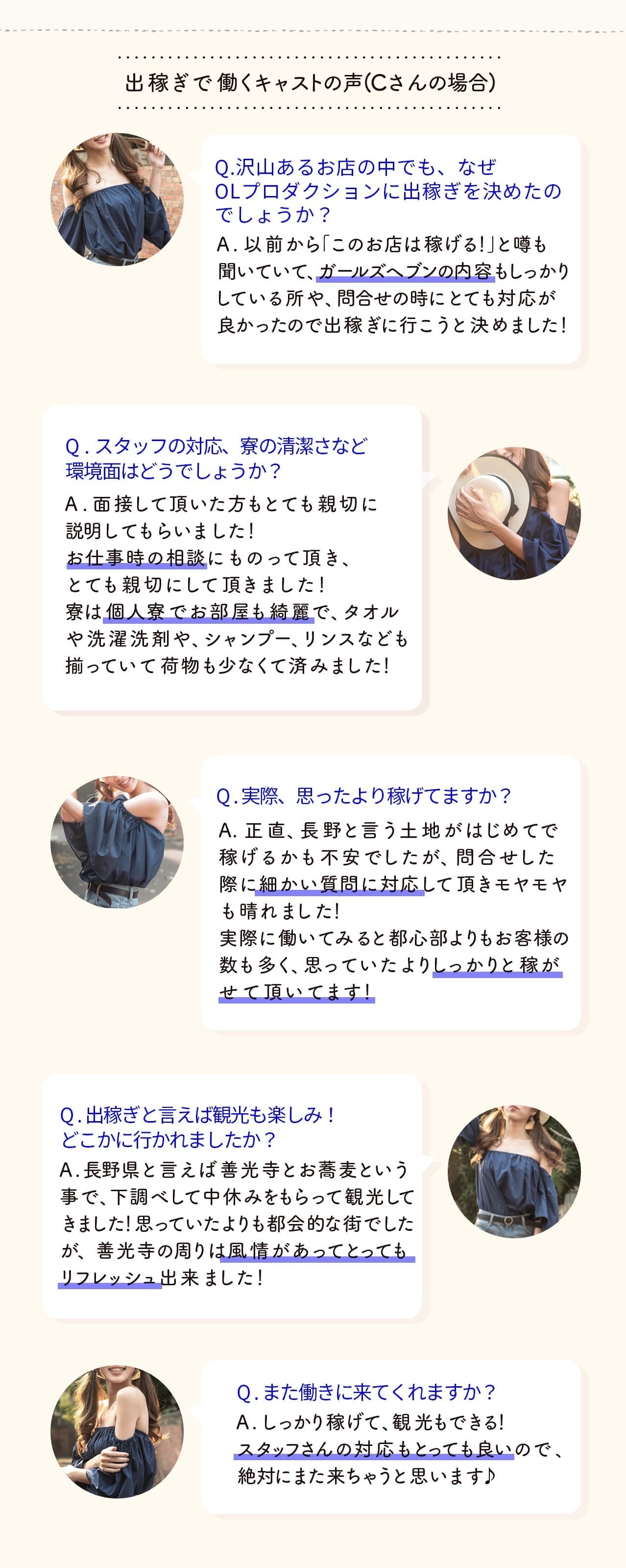 長野県トップクラスの給与、集客、日給保証で安心して働ける環境を当店OLプロダクションは目指します。