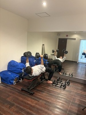 写真は退勤後の筋トレ中です(笑)