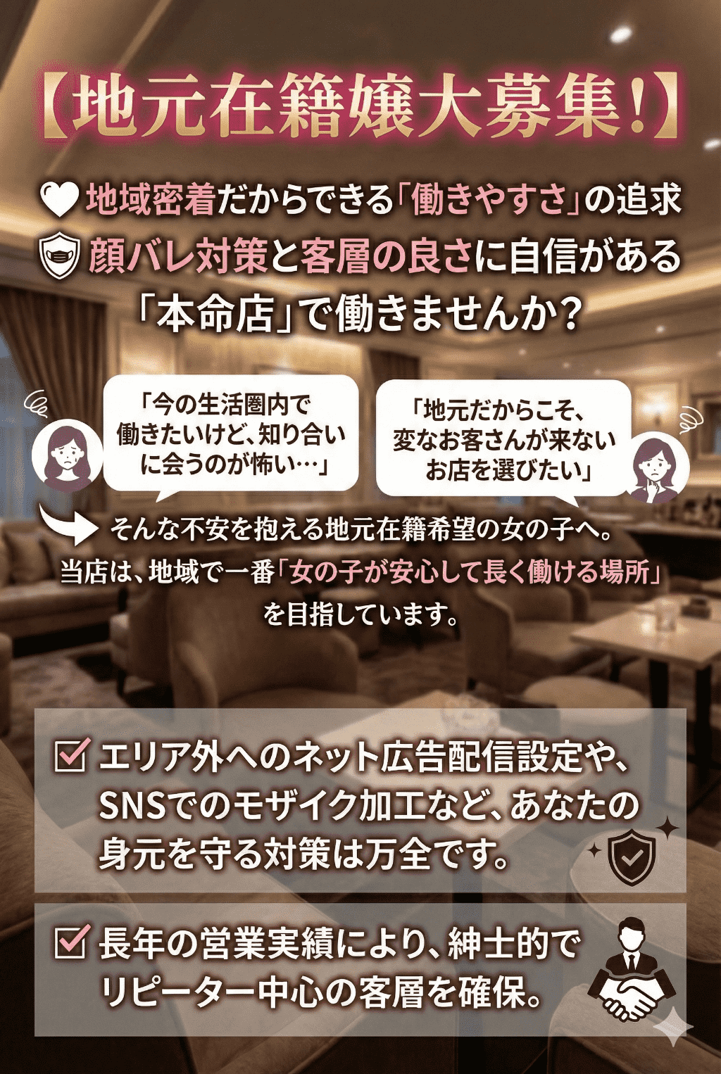 『稼ぎたい』けど『知人バレは不安』そんな女の子は是非一度ご相談ください! 当店は知人バレ対策が充実しております!