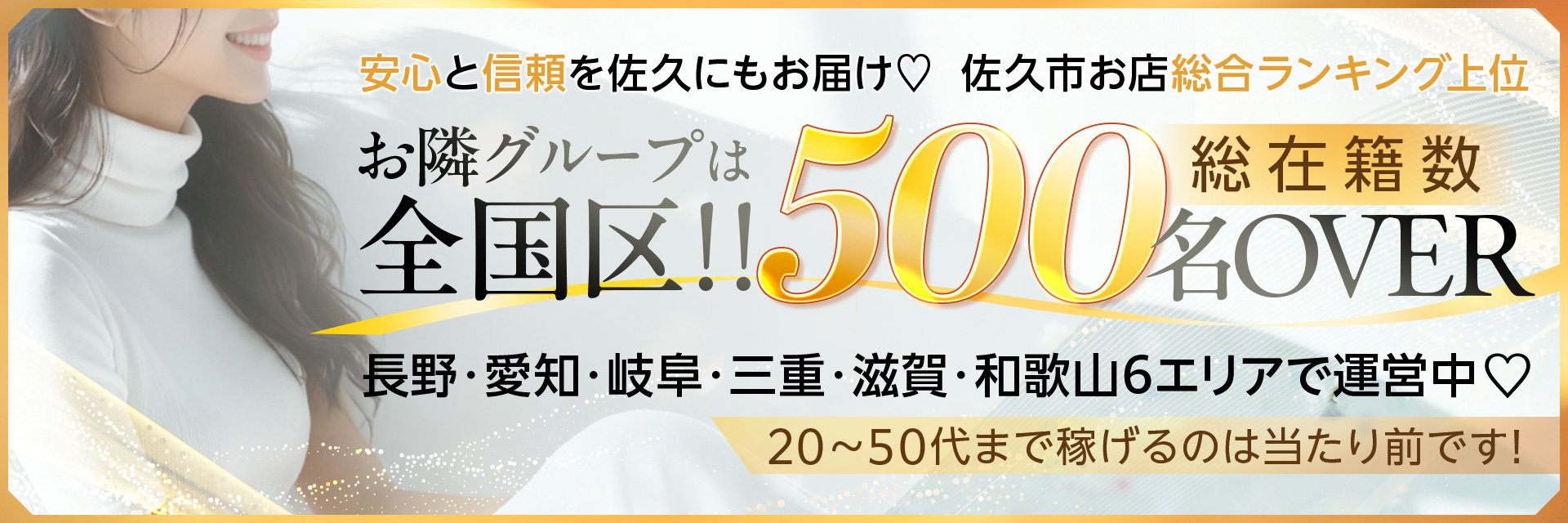 | A | ご安心ください!当店は長野県佐久エリアにてヘブンネットランキング1位です!毎日たくさんのお客様からお電話をいただいておりますので、安心して出勤下さいませ! |