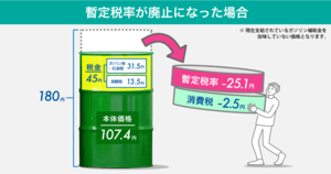 ちなみに暫定税率が廃止されると約25円ガソリン価格が下がるそうです。