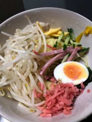 さて、お昼は冷蔵庫を漁ってきゅうりとかあったので冷やし中華を作りました!!
