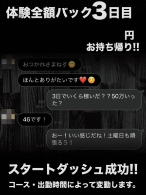 ニックネーム:手こき体験10日全額バック★手だけで月収60万円多発★求人殺到中です★