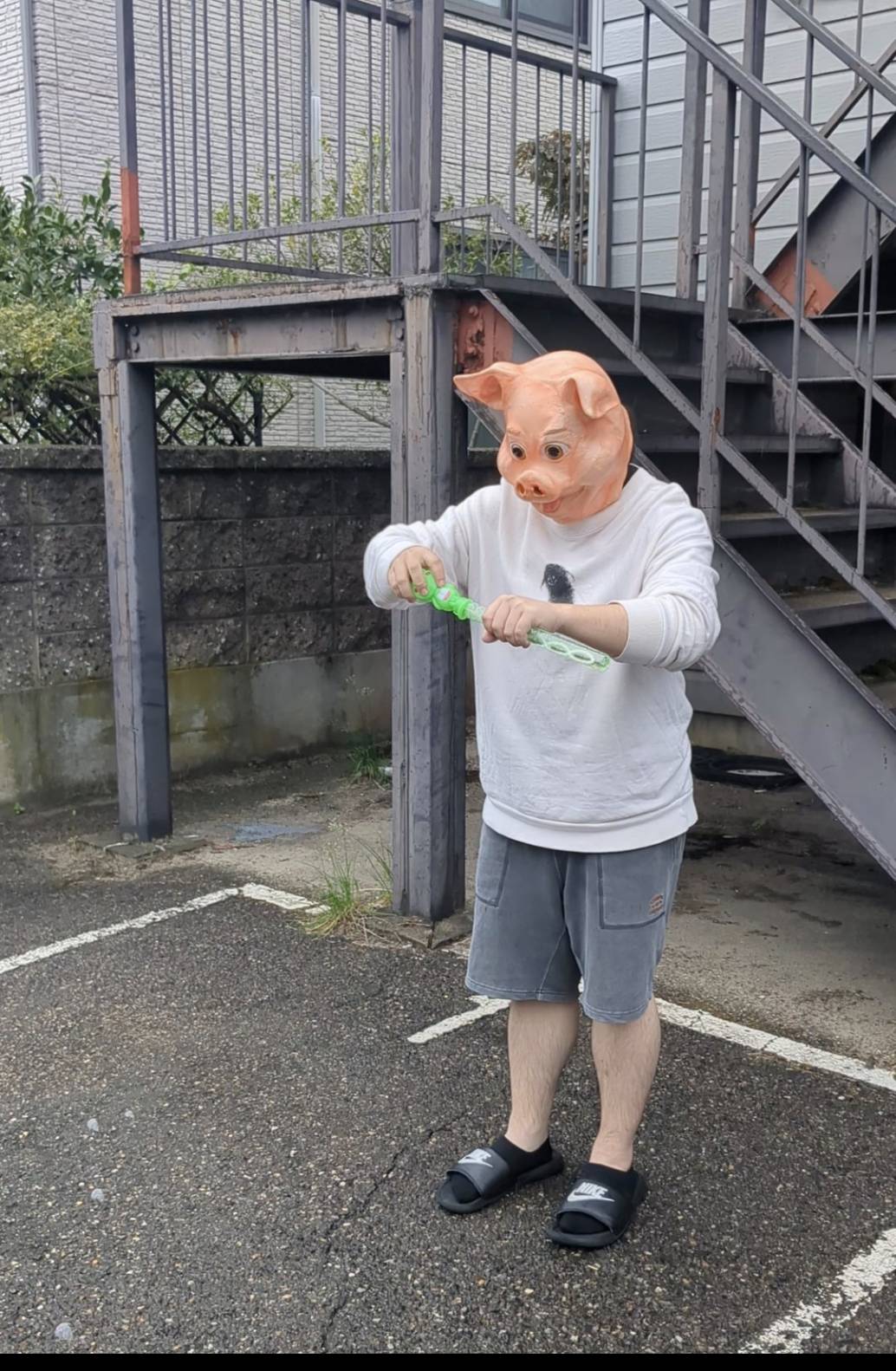 シャボン玉で遊ぼうとする🐖