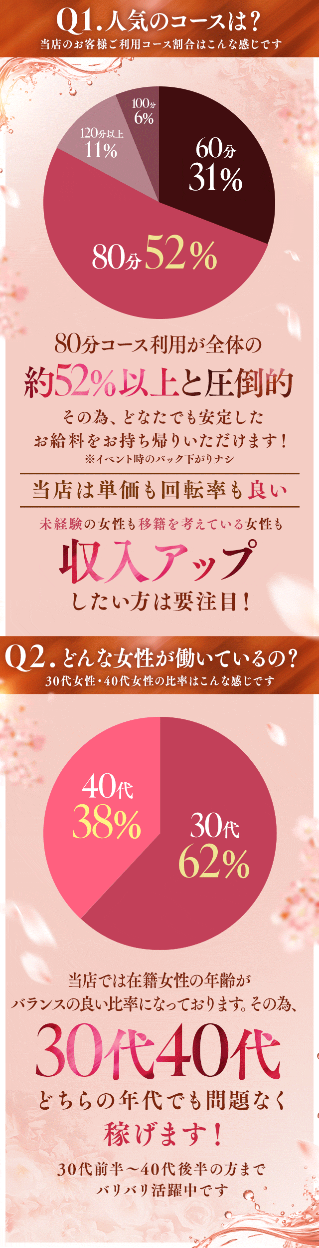 30歳~50歳くらいの大人の女性を求めるお客様が多数!!