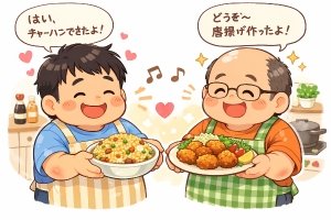 流行りのシール交換ならず30代後半のおじさん同士の手料理交換!笑