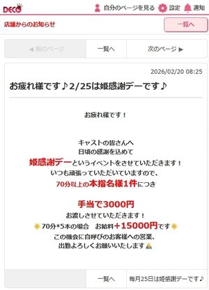 毎日頑張って接客していただいて、本指名の営業をしていただいてキャストさんに