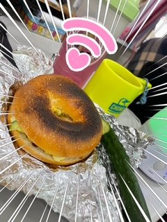 お手製のポテサラをサンドしたベーグル(*^-^*)