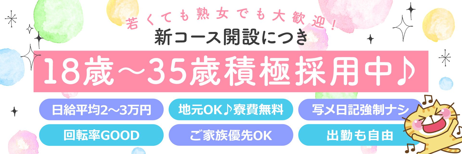| A | 年齢や体型などで不採用になることはありません。 他のお店でダメだったり、クビになった方も大丈夫です。 |