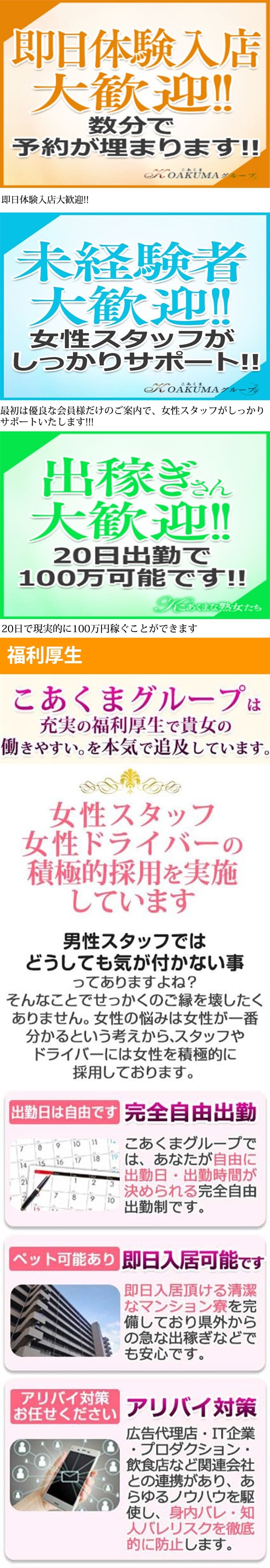 風俗をお仕事とする、色々な事情があるにせよ、一緒に働いていただける仲間を当グループ【KOAKUMAグループ】は全面的に応援します!!