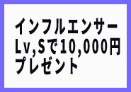 インフルエンサーLvがSだった場合10000円をプレゼント中。