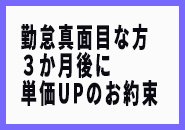勤怠がまじめな方、予定通りの出勤してくれるだけの簡単なお約束を続けてくれるだけで提示した単価に1000円UP(*^^)v