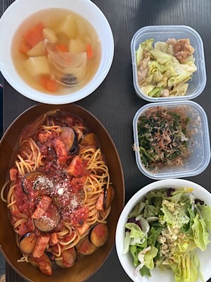 ナスとベーコンのトマトソースパスタ