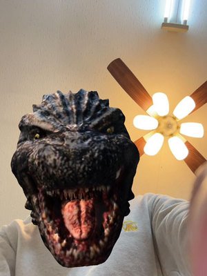 ゴジラのヘルメット、リュック、車、銃、フライパン、服、持ってるんで見せますよ!