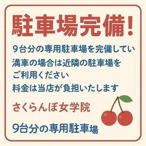 さくらんぼ女学院では女の子専用駐車場を9台分完備しています✨