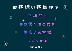 当店は幅広い層の方がいらっしゃいます。やはり30代~50代のお客様が多いですね!!