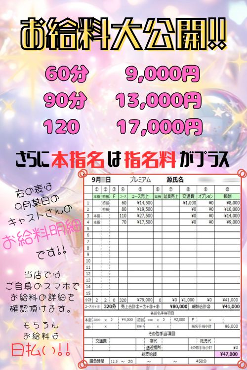 キャスト様のお給料です↓↓