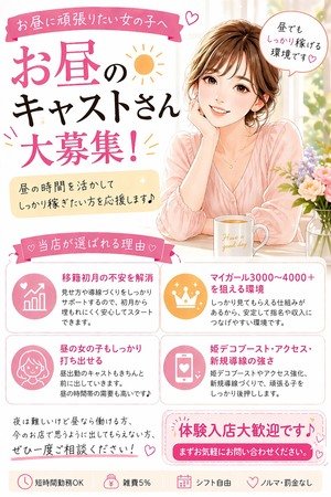 特に当店は、お昼出勤のキャストさんのPRにも力を入れています。