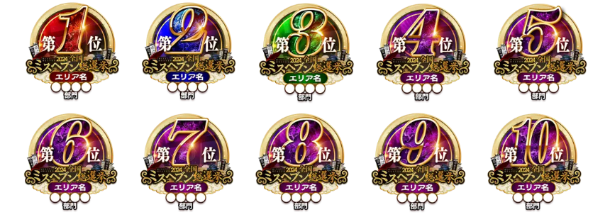 ちなみに地方予選上位10名には順位にちなんだ下記のバッチが与えられます。