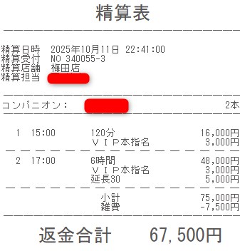 本指名バック3,000円を