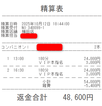 本指名バック3,000円を