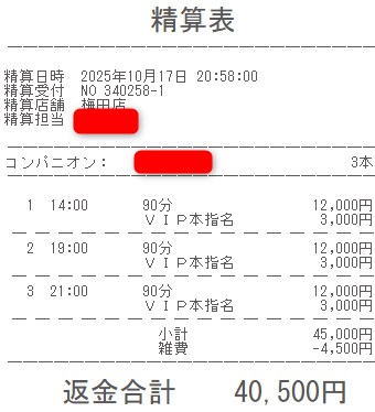本指名バック3,000円を
