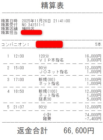 本指名バック3,000円を