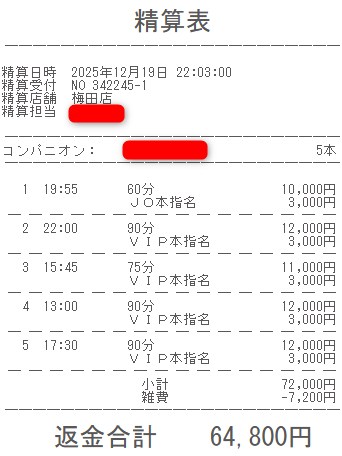 本指名バック3,000円を