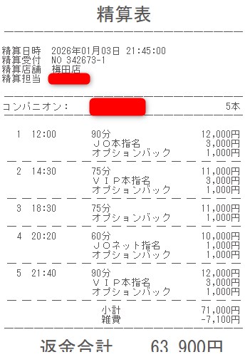 本指名バック3,000円を