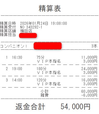 本指名バック3,000円を