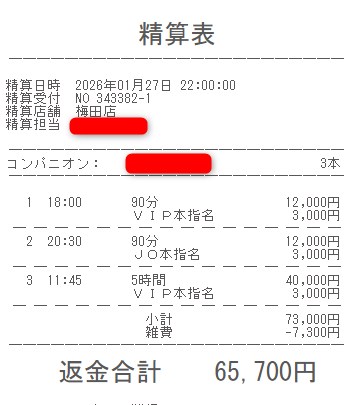 本指名バック3,000円を