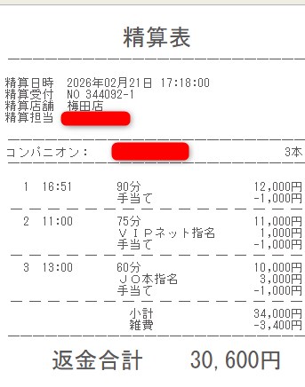 💰 2/21(土) 給与実績 11:00 - 18:30