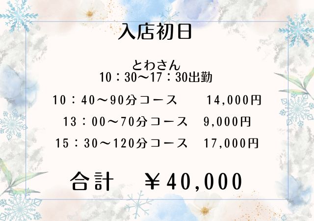 とわさんは先日面接に来てくれて、本日が初出勤。 なんと… 10:30〜17:30の枠が即日完売✨ 「初日からこんなに予約が入るとは思わなかった…」とご本人も喜んでくれました😊