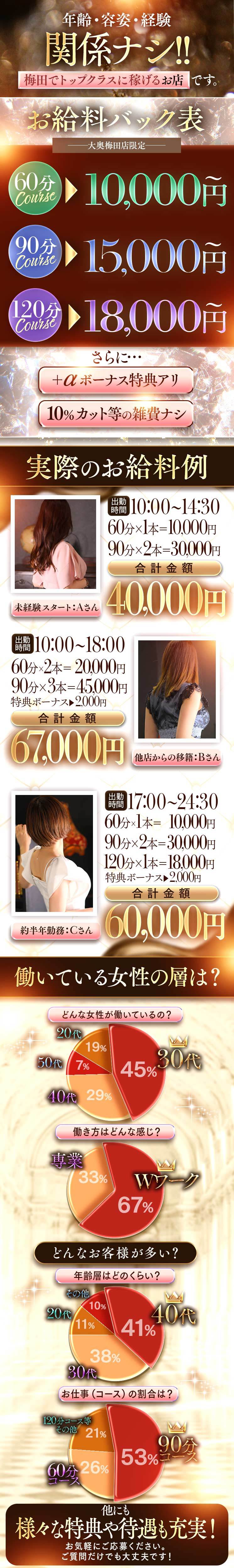 大奥は女性に満足していただける、高待遇をご用意しましたm(__)m