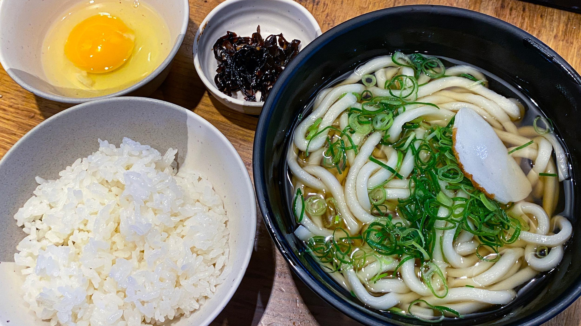 ただ、家で米を炊いて、スーパーでうどんと卵を買うと、