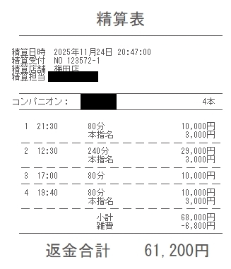 本指名のバックがなんと!!