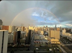 雨が降ったあと、ふと空を見上げたら綺麗な虹が出てました。