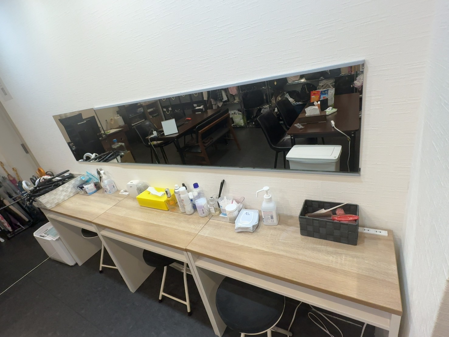 大きな鏡台も設置済みで、メイクなどはこちらご利用ください!