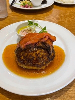 ソースは少し甘めの和風ベースで、ハンバーグの旨味とめちゃくちゃ合うの😭