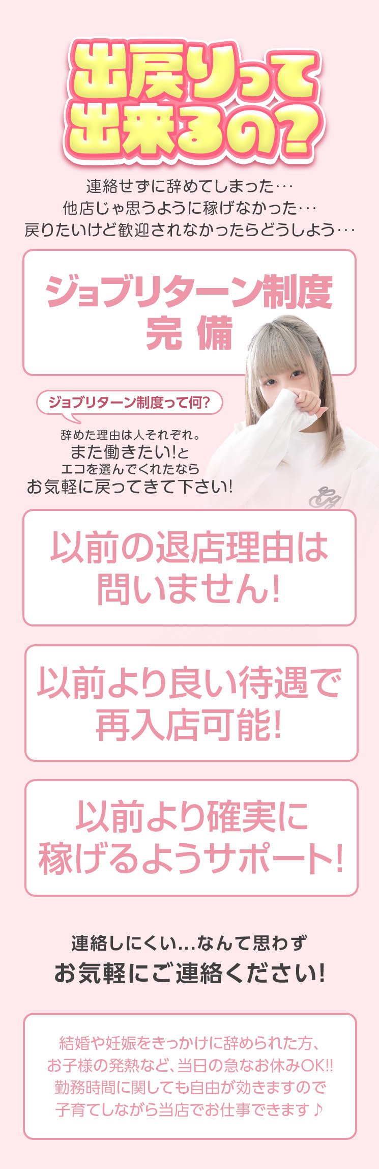 ジョブリターン制度でスムーズに復帰♥️