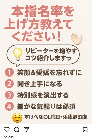名前を入れて感謝伝えるだけで指名がリピートに!