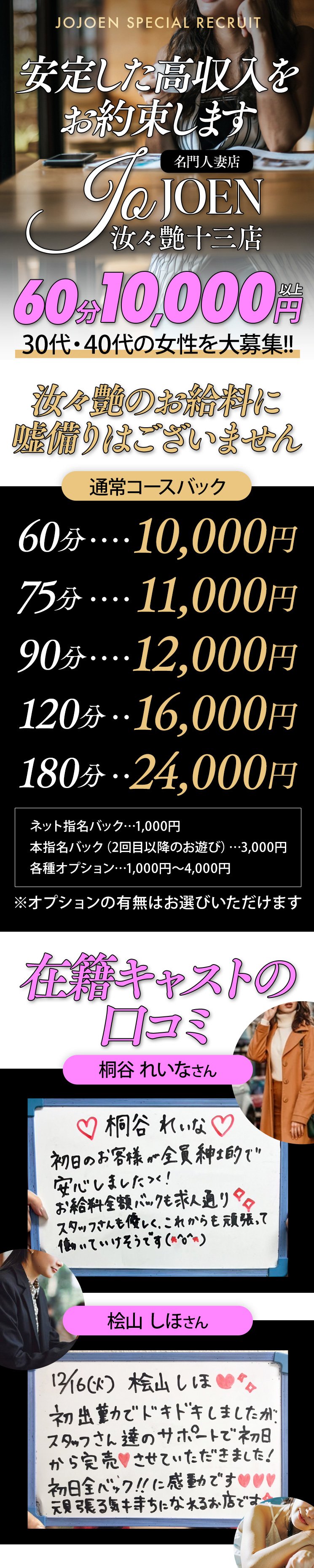 汝々艶十三店は 年齢を武器にして活躍できる 大人の女性のお店です✨ 経験は問いません。 未経験でも丁寧にサポートします😊 未婚・既婚も関係なし ライフスタイルに合わせて働けます🔥 タトゥーや妊娠線があっても大歓迎👌 過去に在籍していた方 他店在籍中の方ももちろんOK🙆♂️ 「私でも大丈夫かな…」 そんな心配は一切不要です😊 安心して一歩踏み出せる環境が 汝々艶にはあります✨ ※18歳未満(高校生を含む)の応募はお断りします。 |