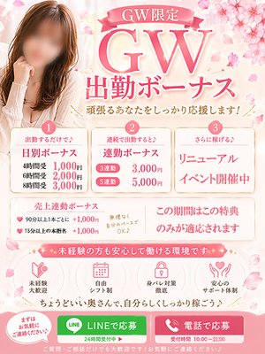 尚、在籍女性はこの期間は交通費やラスト出勤ボーナスが同時には適応されません。